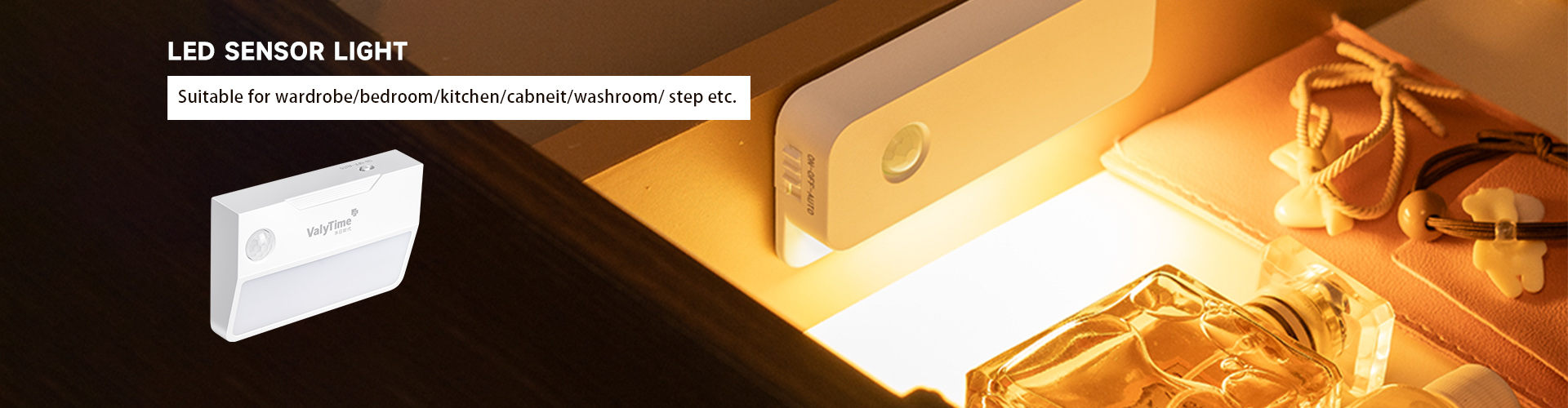 ValyTime's Smart dual-sensor control: Motion detection + light sensor, Auto on/off for hands-free use - 3 CCT adjustable color temperatures 3000K-4000K-6000K, stepless dimming, customize your ideal lighting ambiance – Premium aluminum housing, sleek, durable and efficient heat dissipation. Equipped with high-sensitivity human body motion sensor and light sensor, this cabinet light delivers truly smart, hands-free operation. 120° wide sensing angle and a 3 meters detection distance, Auto-off after 30 seconds of no motion detected. Upgrade your home lighting with our premium LED cabinet light, engineered with intelligent dual-sensor technology and versatile lighting functions to bring convenience and elegance to every corner of your home. Magnetic installation, perfect for kitchen cabinets, wardrobes, bookshelves and more .